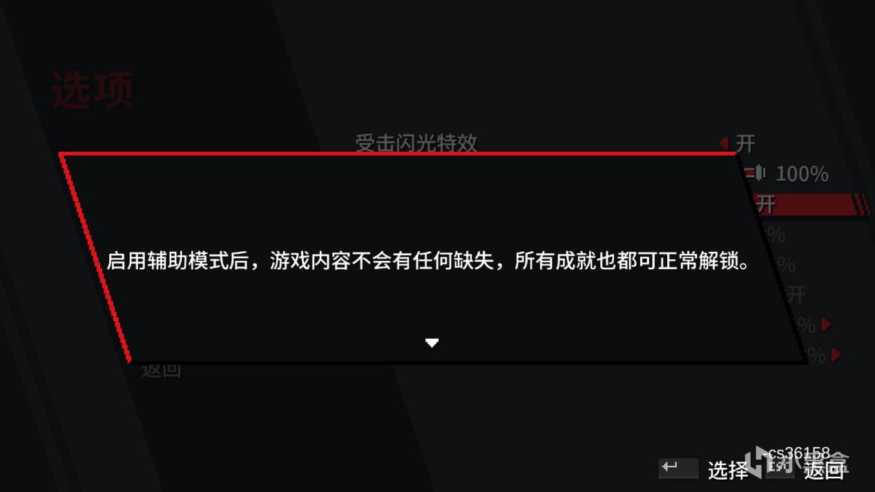 並且,遊戲還爲動作遊戲苦手的玩家提供了完全不影響成就解鎖的“輔助模式”,通過輔助模式,玩家可以修改遊戲速度(50%-100%),受傷係數(0-100%),受傷擊退,血殤時間(100%-無限),斷頭步範圍(100%-150%),按照自身需要設定遊戲的難度。