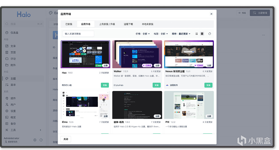 然后就是下面这个halo主题,里面有很多种可以自己切换。docker部署的很方面。1panel和宝塔现在都可以一键部署了。我上面说的所有的除了上面这个都支持一键部署,哔哩哔哩找个视频就行了