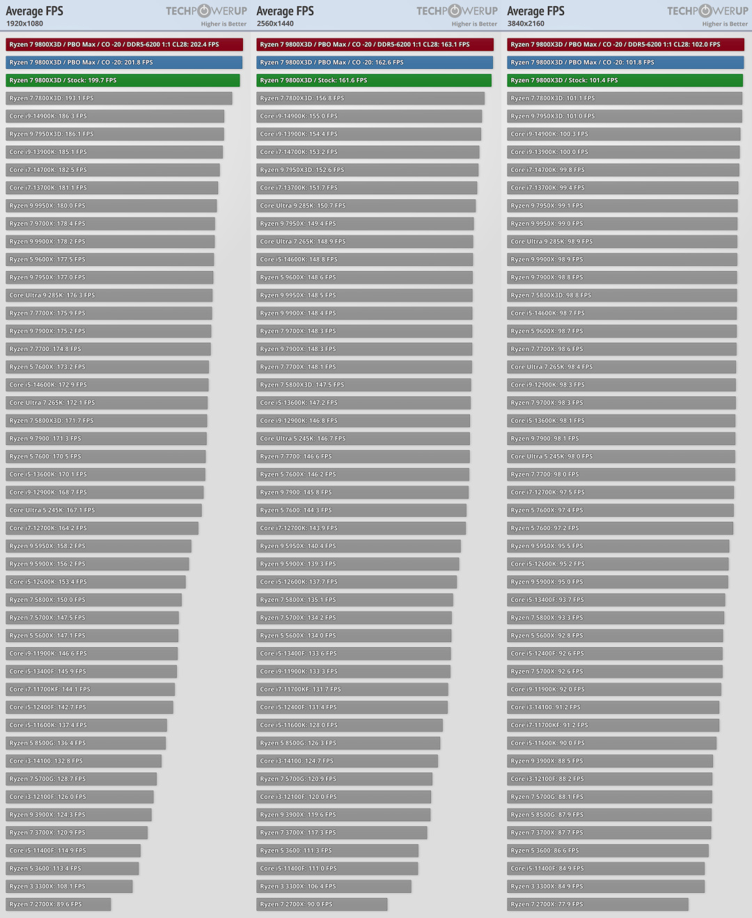 CPU平均帧对比(9800X3D基准)来源:techpowerup
