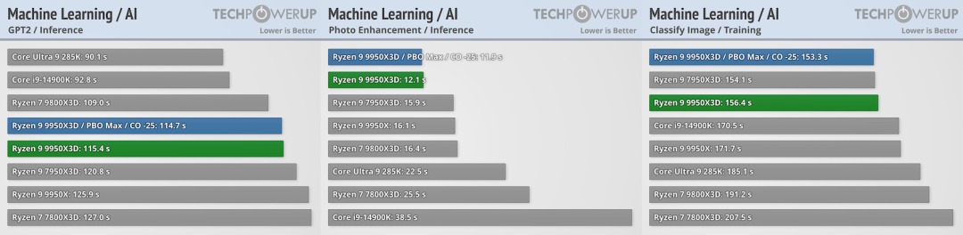 GPT2、图像放大、图像分类(9950X3D基准)来源:techpowerup