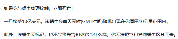 “给你10亿美元,但有一只永生的蜗牛随机刷新在你的范围内,每天追杀你,你干不干?”