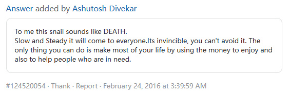 你很难想象,这个看似简单的提问,会在国内引来累积4千万的恐怖浏览。同时,还让无数能人才子投身其中认真思考如何躲避蜗牛,仿佛自己真的能获得十亿一样。——或许相比于幻想当英雄,思考干了亏心事儿之后该怎么找补这种思考更加刺激。