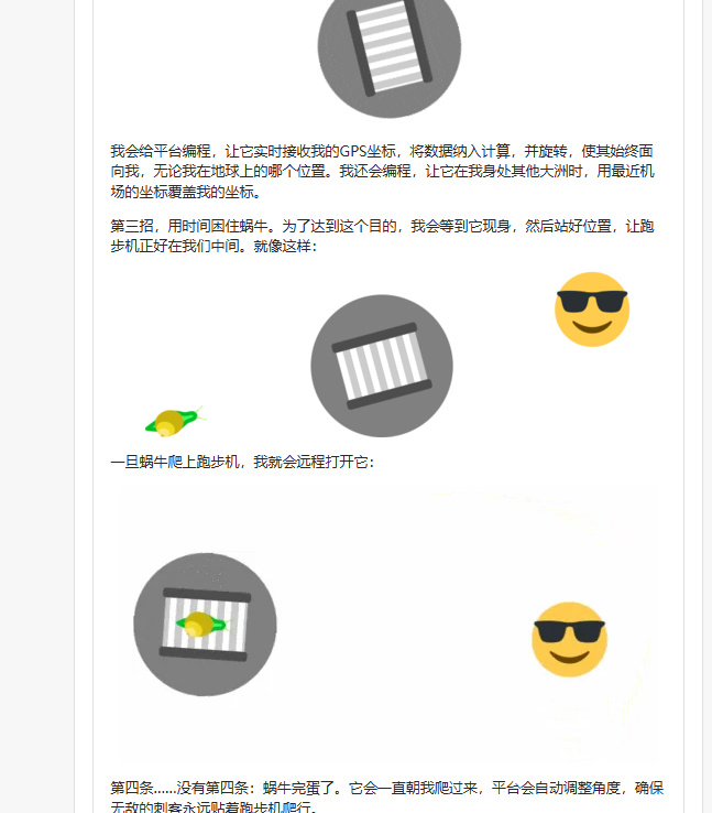 早期国外的问题版本,由于没给蜗牛加啥离谱的buff,所以回答也相对常规与无聊:要么效仿壁画上的古人拿起武器盾牌直接战斗爽,要么以一片真心对待,和他成为至交朋友;再或者,写个程序之类的东西对这个蜗牛实现永控……