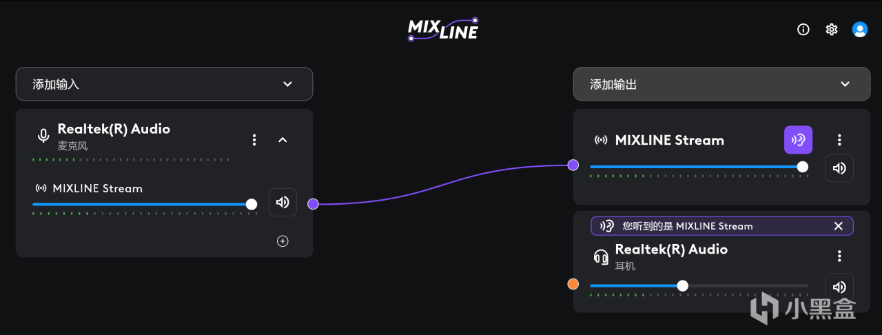 点击MIXLINE Stream(虚拟麦)上的👂,就能通过你的实体播放器监听MIXLINE Stream(虚拟麦)的声音,也就是说你能通过耳机听到自己说话的声音。