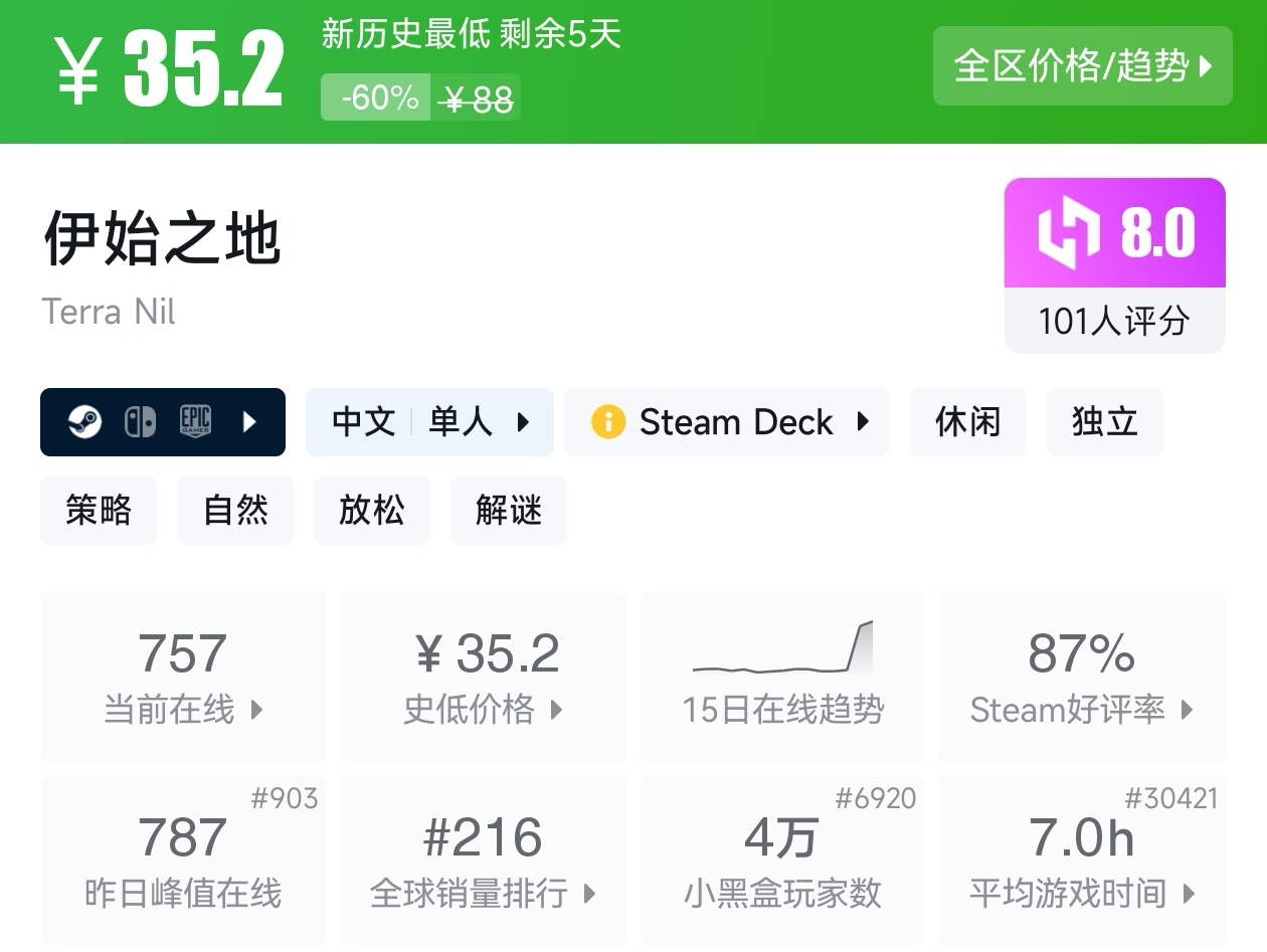 大家好,沒錯,又是我,你們的老朋友亦然,在最近有很多遊戲都迎來了不同程度的折扣,當然其中就有很多新史低遊戲,既有大作,也有獨遊,評價都挺不錯的,其實新史低的遊戲買起來最有安全感,至少在很長一段時間內都不會更低,我將爲各位進行一個彙總,希望我的彙總,能夠幫助各位盒友挑選心儀的遊戲。
