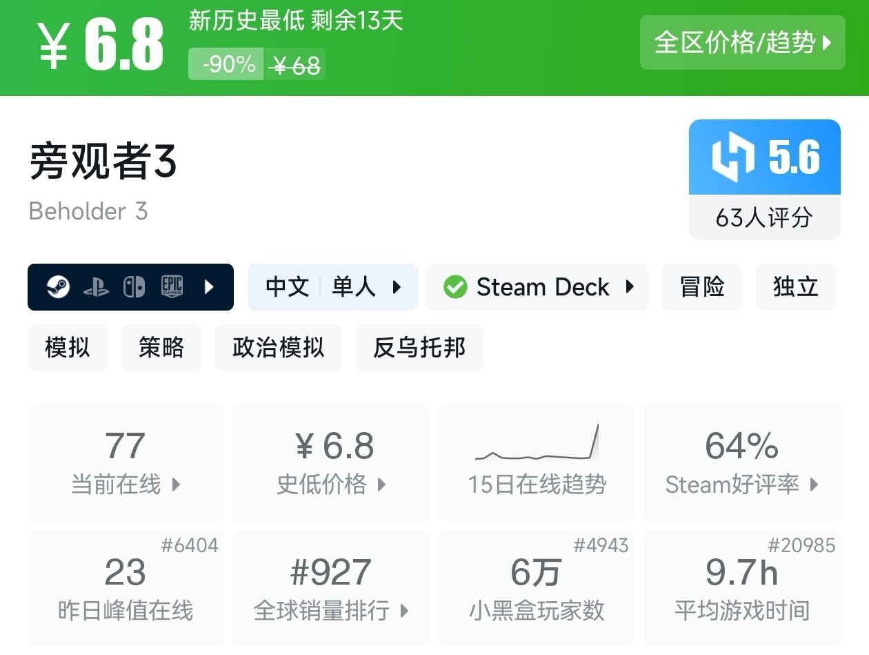 以上就,這期的折扣彙總,幾乎涵蓋了近期所有新史低遊戲,足足用了我一個小時。