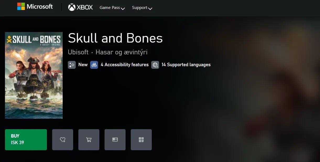 在Xbox冰岛,《碧海黑帆》仅需39冰岛克朗(约合人民币2.31元)即可入手,并且该页面没有任何折扣通知,这意味着39冰岛克朗为正常售价而非折扣后的优惠价。