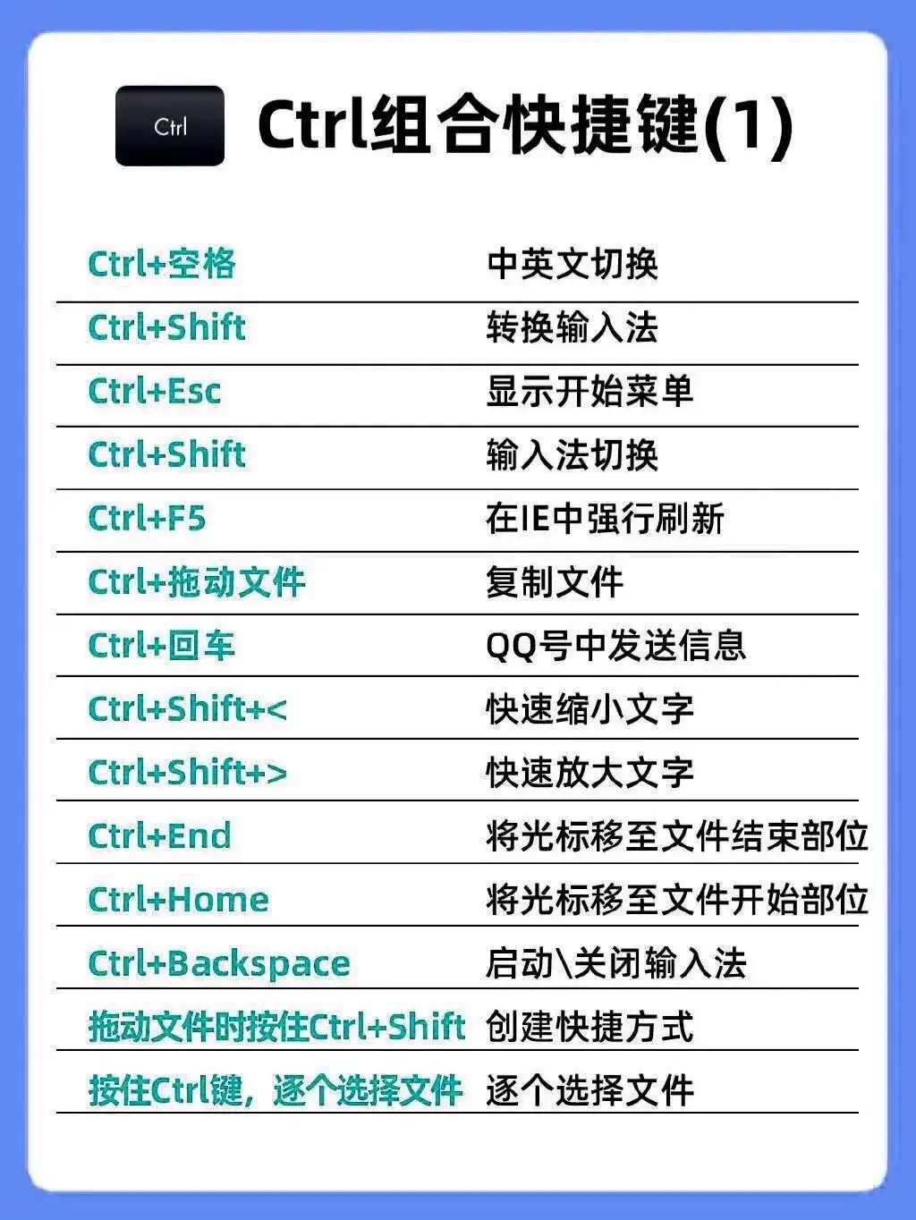 控制键是日常操作的 “效率利器”,核心功能如下: