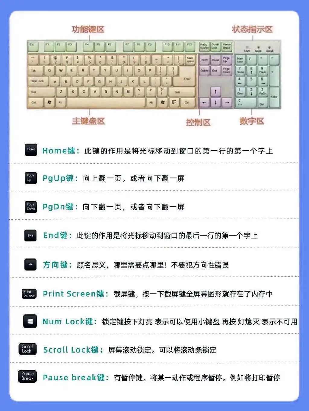 右侧带指示灯,灯亮时锁定方向键功能,主要供程序员使用,普通用户可忽略。