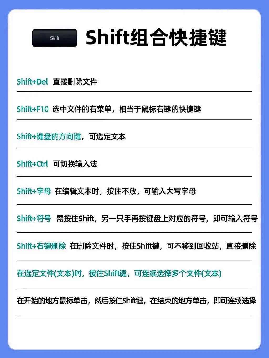 小贴士:Shift键左右两边都有,选顺手的一侧操作即可,记住它是 “上档键” 的核心作用。