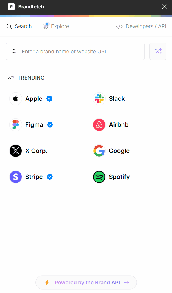 只需输入品牌名称或网址,它就能调取并插入官方的品牌标志。最重要的,是还能直接获取品牌的核心内容,比如标准色值、官方字体,甚至品牌图片库。这对于快速搭建规范的品牌文档或高保真原型来说,很实用