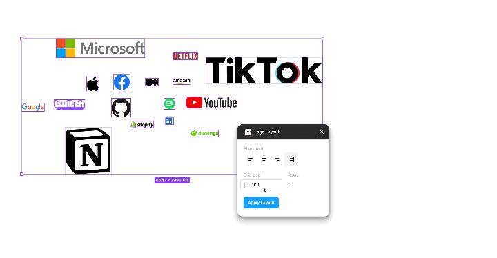 整理一堆尺寸比例各异的 Logo 是不是挺头疼?特别是想把它们排成整齐的列表时。这款插件就是专门解决这个问题的。它能智能识别每个标志的长宽比,自动调整大小,生成间距均匀、排版美观的布局。你可以先用它快速搞定基础排列,再针对个别需要调整的地方手动细调就行。这在展示案例或者制作VI时,尤其省时省力。