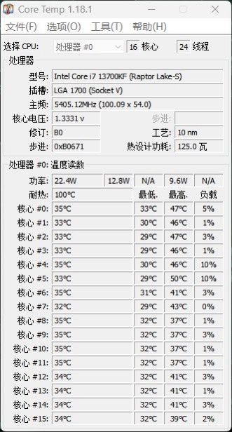 打开Core Temp,重点来了‼ 该软件只能看核心温度,电压什么的就不用看了,这个核心电压不准,甚至可以用离谱来形容,所以咱们pass这个核心电压,只用来看核心温度。