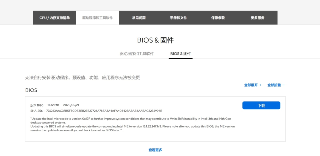 点击旁边的驱动程序和工具软件,点击bios固件直接点第一个下载就行