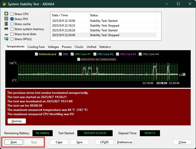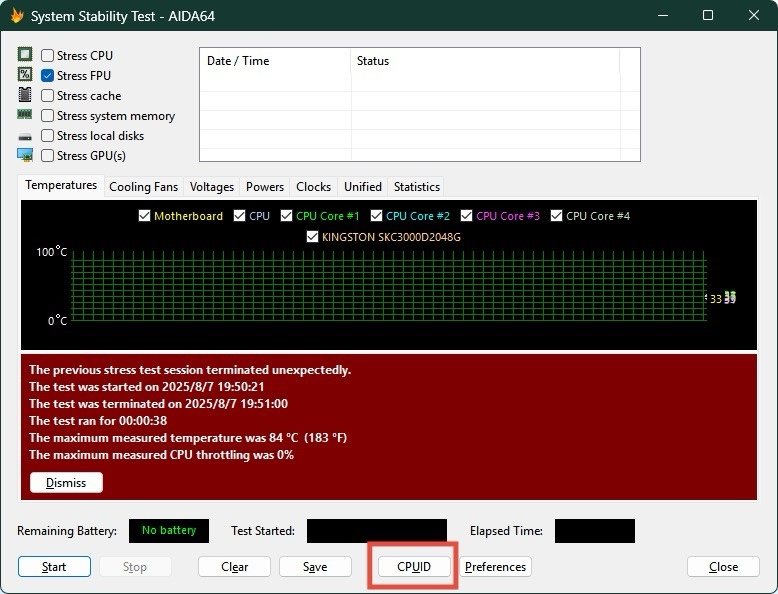 这边准备工作就准备完毕了,现在咱们就开始准备测试CPU是否暴雷缩缸。