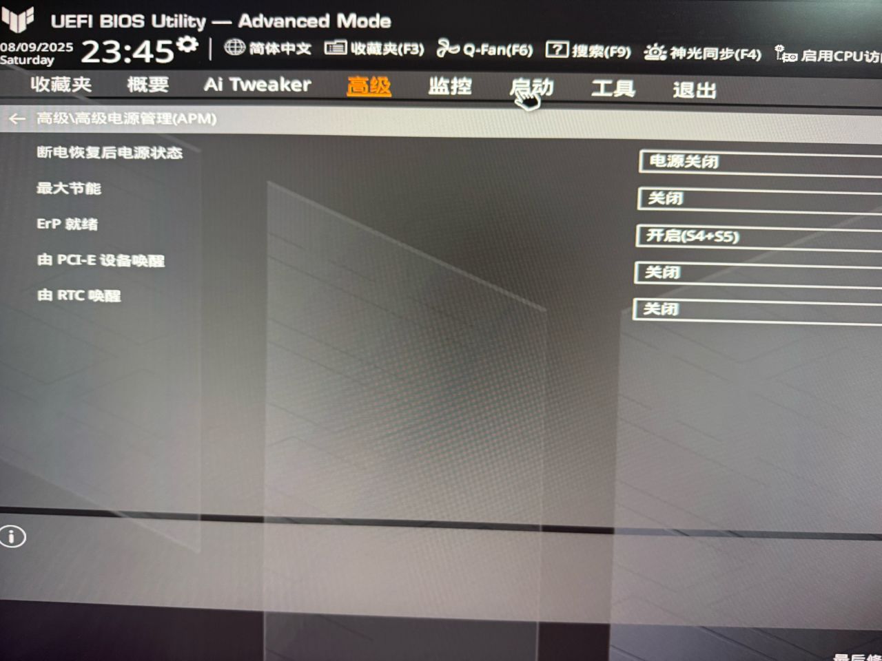 把ErP就绪设置成开启(S4+S5)这样就不会电脑关机之后USB还供着电鼠标键盘啥的都亮着灯。
