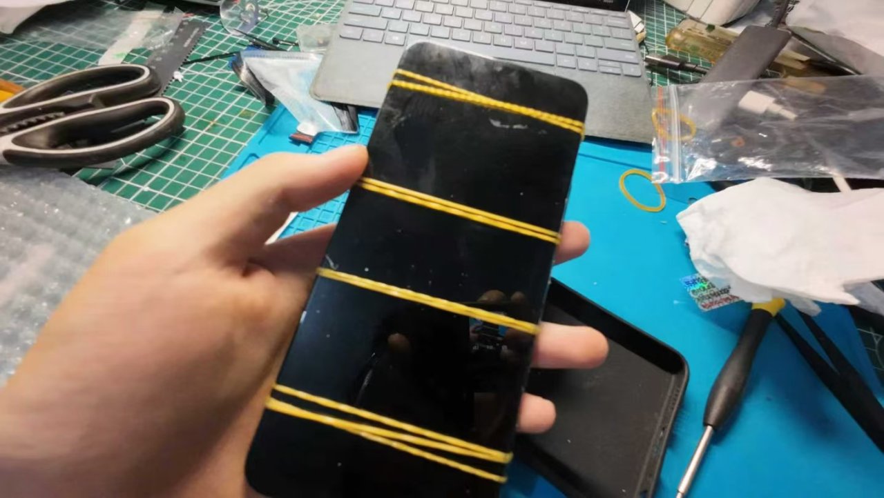 之前那個屏幕就是我爸在一次遞給我手機的時候,不小心手滑摔在地上了,但是隻是外屏碎了,所以還能用,我就一直湊合着用,前幾天自己也買了一個屏幕,就想着自己換。今天忙活了一下午,可算是把手機屏幕換好了,也做過各種測試了,觸摸和顯示都一切正常。,就和我爸炫耀,然後我爸就跟我扯,說我用皮筋的困不牢,非得用膠布纏。還沒纏完呢,手機屏又碎了。