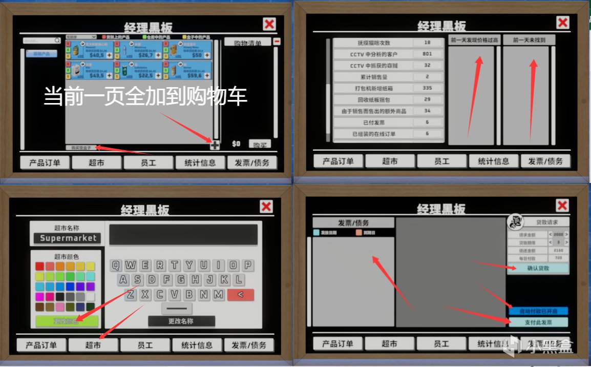 自动结束一天:22.30没顾客了就直接自己关店,挂机党狂喜,但是不太建议开,毕竟员工5倍速补货只有晚上能开(这个在员工篇会讲)
