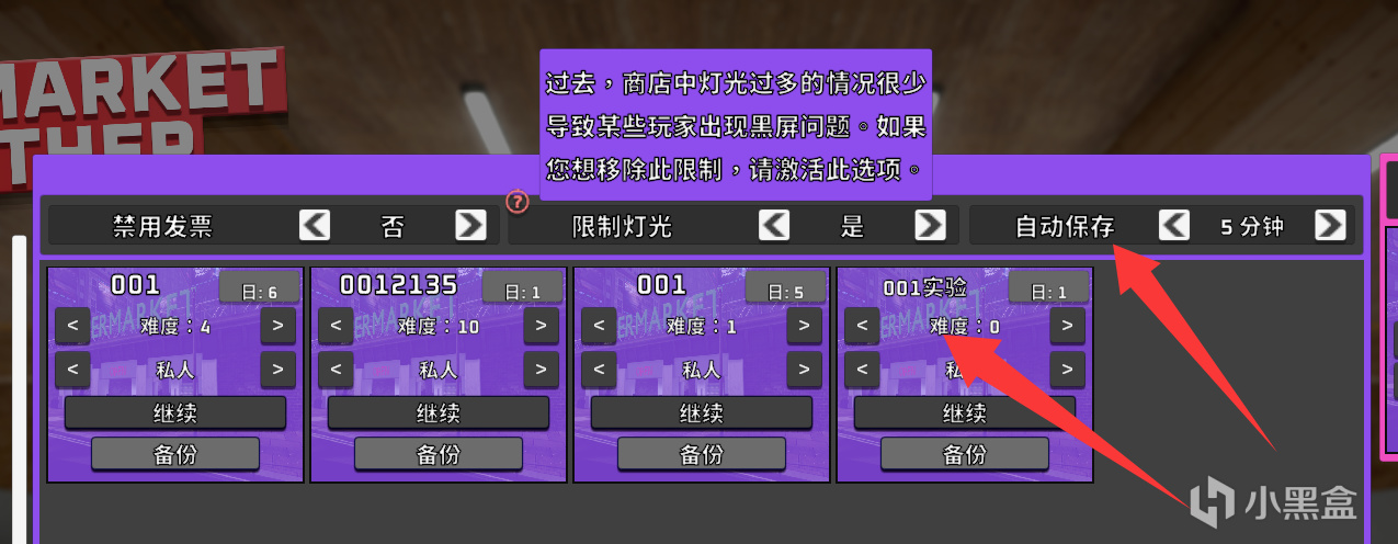 自动保存:【25年7月份更新】需在加载菜单手动开启,也就是上图位置(多人联机可先开单人商店,然后退出,加载商店,开启自动保存,改成公开房间)