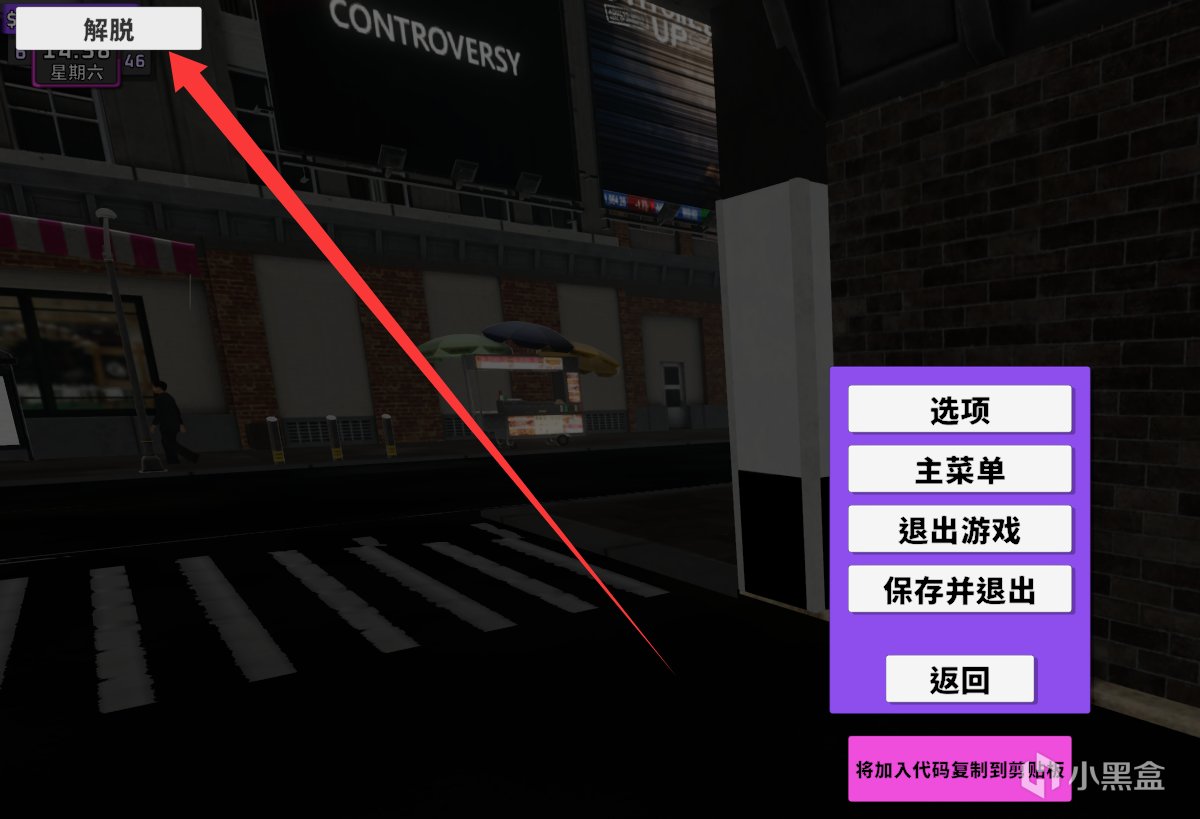 请按左上角的【解脱】,这个时候你会传到【禁闭室】在员工休息室内。