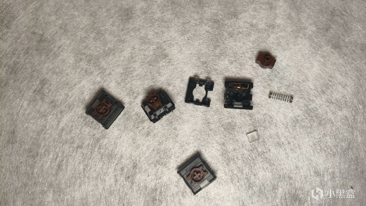 軸體方面也做得相當講究,上一次我用的渴創k3使用了定製的佳達隆紅矮軸,而這次的畢方同樣定製了矮茶軸,POM軸心+POK上殼和軸座,同時帶了導光柱,軸體出廠自潤,手感上略微段落,聲音方面也比紅軸多了一些但並不嘈雜,矮茶軸剛好就能在足夠的鍵位行程裏給到足夠的反饋。