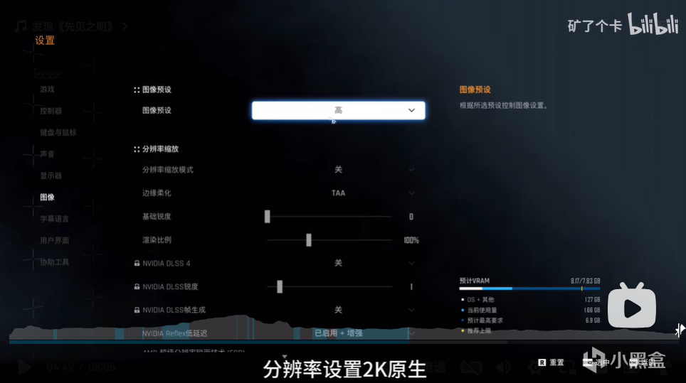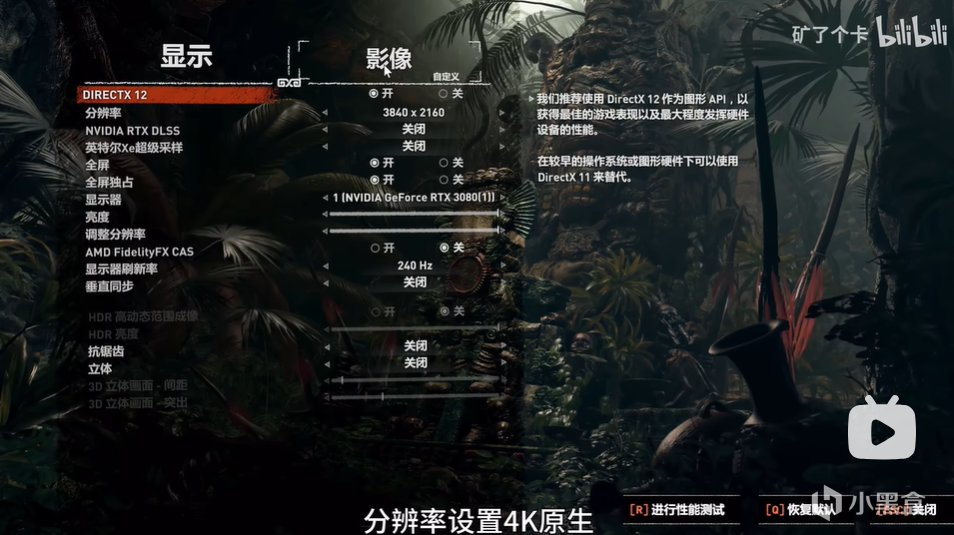 推荐分辨率2k超高,4k中低。