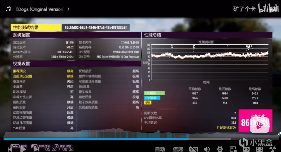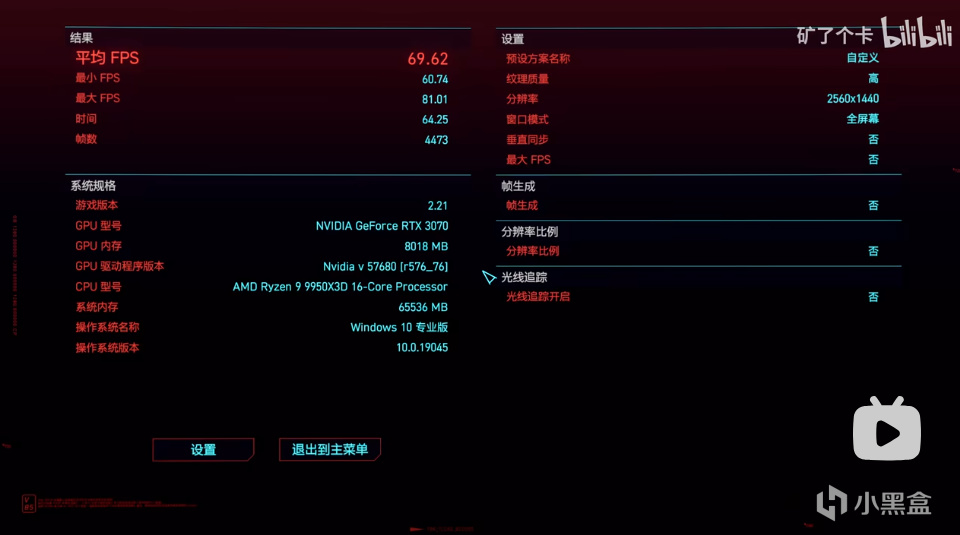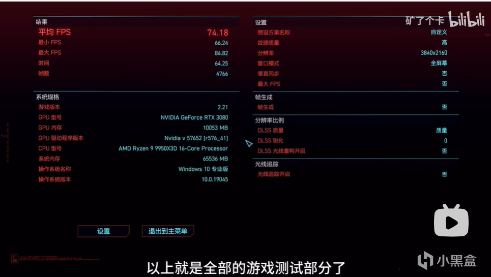 2077 dlss质量挡 自带测试 均帧78