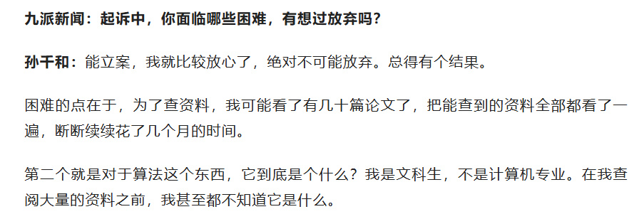 然而根据原告的说法,她自己之前甚至都不太知道什么是算法