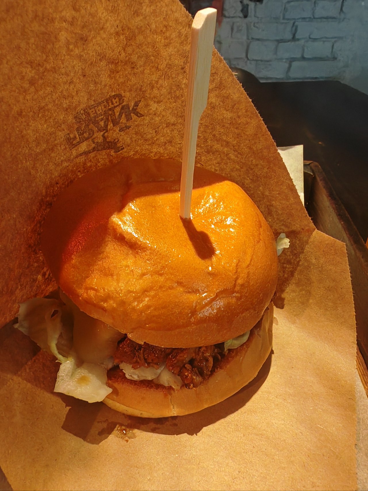 分店众多,在圣彼得堡和莫斯科均有分店,我只在莫斯科吃过一次,离yandex的博物馆不到20米就有一家,捎带脚就去了(附近好像还有一家哥俩好餐厅)。非常近,服务员不会英语,会给你一张点菜用的报纸,各位自己去小红书搜中文菜单。我点了一份猪肋排配野蘑菇配柑橘酱(这个量有点小,各位其实点个正常口味就行),加上一个法式肋排堡。他们家的肋排闭着眼睛点,非常不错,外脆里嫩,调味也好,没有难吃的。法式肋排堡,我个人理解这种法式基本上就是干个蛋包上去,你让我现在具体回忆是什么口味不记得了,反正就是好吃。