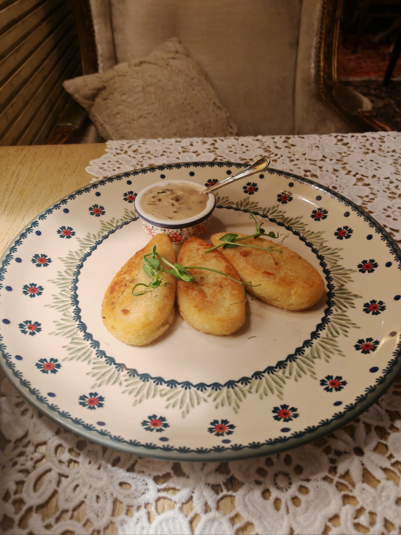 他们家口味应该非常不错的,糟糕的网络导致糟糕的翻译,他毁了我的饮食体验。第三张图片是蘑菇馅的土豆饼,那个蘑菇馅里绝对加葱了,真的要给我恶心到爆炸,我只吃了半个。从此再没在俄罗斯点过跟蘑菇有关的菜品。各位点东西千万别急,多看看,我主要网络太烂翻译个菜单翻译三十分钟真给我整急眼了。