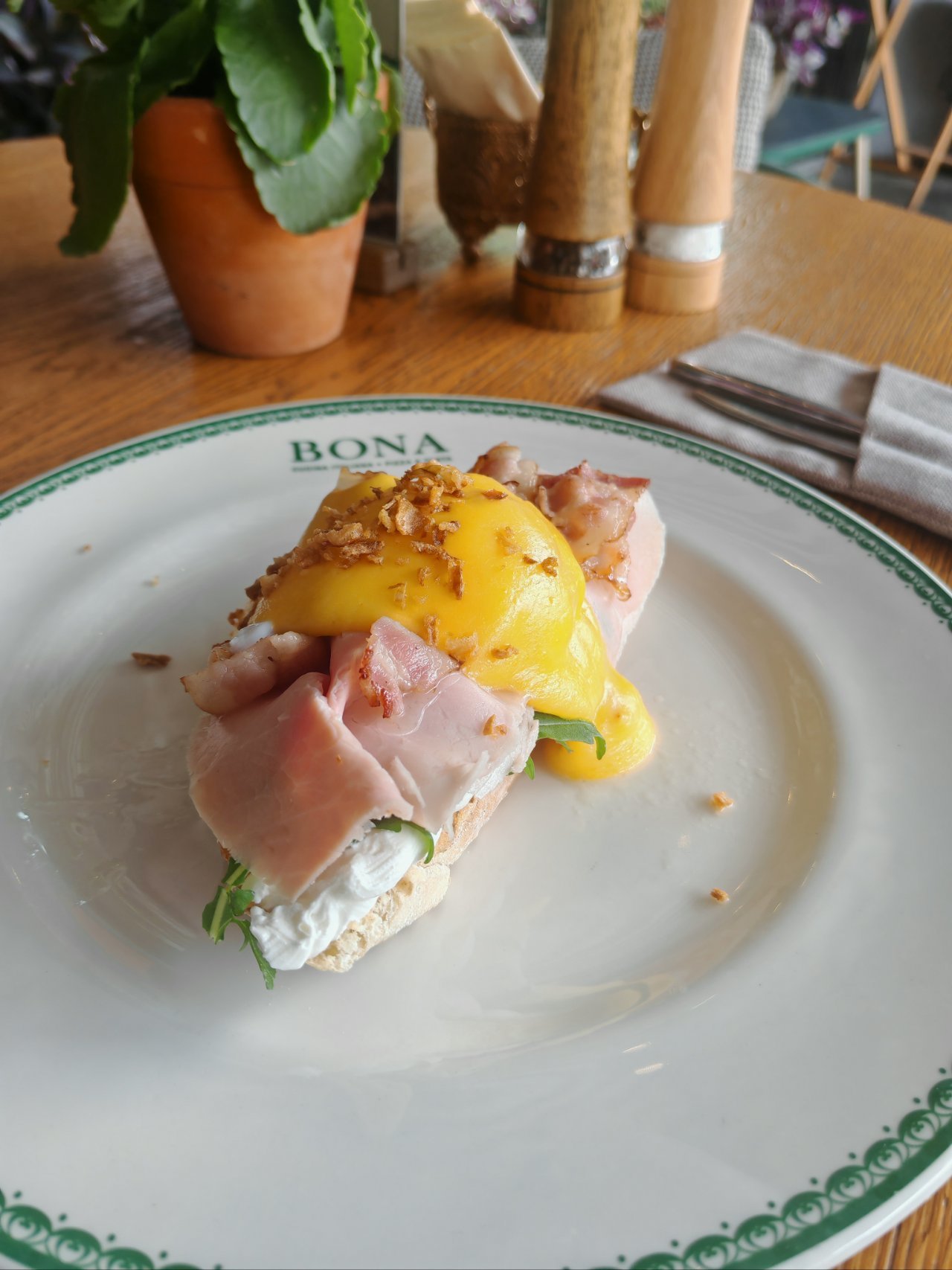 夏宫旁边的餐馆,小红书上主推的意大利面。但我来的时候说没到11点,所以只提供早餐菜单。应该是个什么法式的东西,非常好吃,最下边我忘了是面包还是鱼了,反正上边蛋裹着培根和火腿非常好吃。顺带说一下夏宫这地方如果天气不好就完全没有来的必要,自己网上偷两张发朋友圈得了。如果天气很好,可以尝试坐船来夏宫,再在夏宫逛一圈,出来来这吃一顿。再看自己心情是直接回去还是打车去叶宫。