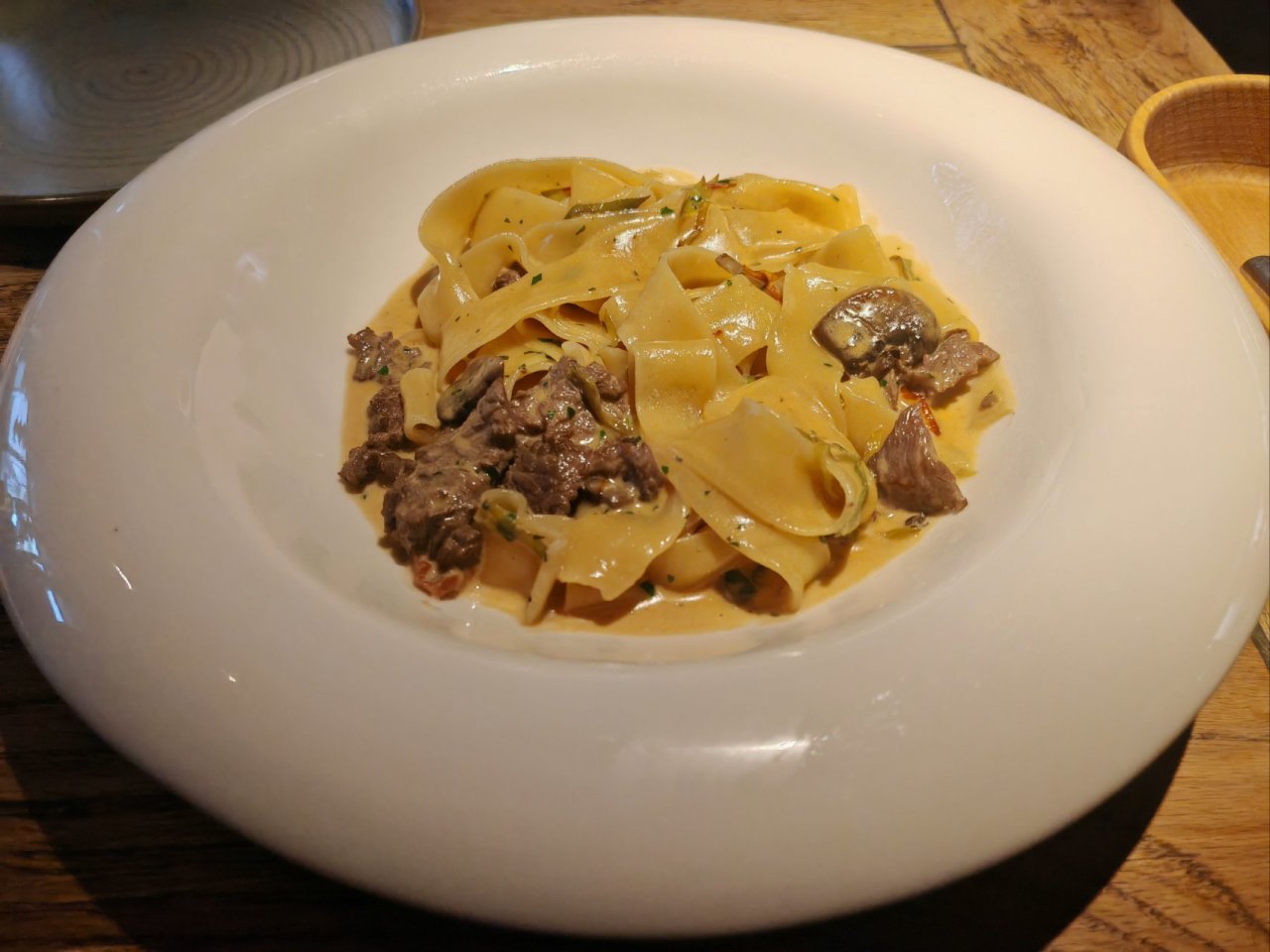 因为他家我在从俄罗斯旅游回来以后,除了蛋炒饭以外,就想猛炫披萨和意大利面。我当时饿了一天一夜,只吃了一条士力架,猛猛赶车,点了一份玛格丽特香肠披萨和宽的意大利面,好吃的一比。我个人极度讨厌大葱和洋葱的味道,各位可以在宽的意大利面里很明显的看到葱,不知道是我太饿还是什么,味道浓郁的酱汁裹着面条,葱的味道刚刚好,牛肉(应该是,我忘了)口感很好,十分入味。玛格丽特香肠披萨就是很正常的薄饼披萨,一个正常的披萨什么味他就是什么味,料加的很克制味道也很棒。我另外又点了一壶橙子+沙棘熬的果汁(茶?),受不了酸味可能要考虑一下,我个人觉得非常好喝,我到圣彼得堡的时候阴雨连绵,我穿着短袖浑身发冷,这壶果汁(茶?)暖身开胃,非常合适。小红书还推荐了意大利面,我除了海鲜只看到这款奶油的,酱汁很棒,但是意大利面条个人感觉太硬了,口感一般,可以一吃。其他款式自己去小红书看,我就吃过这么多。