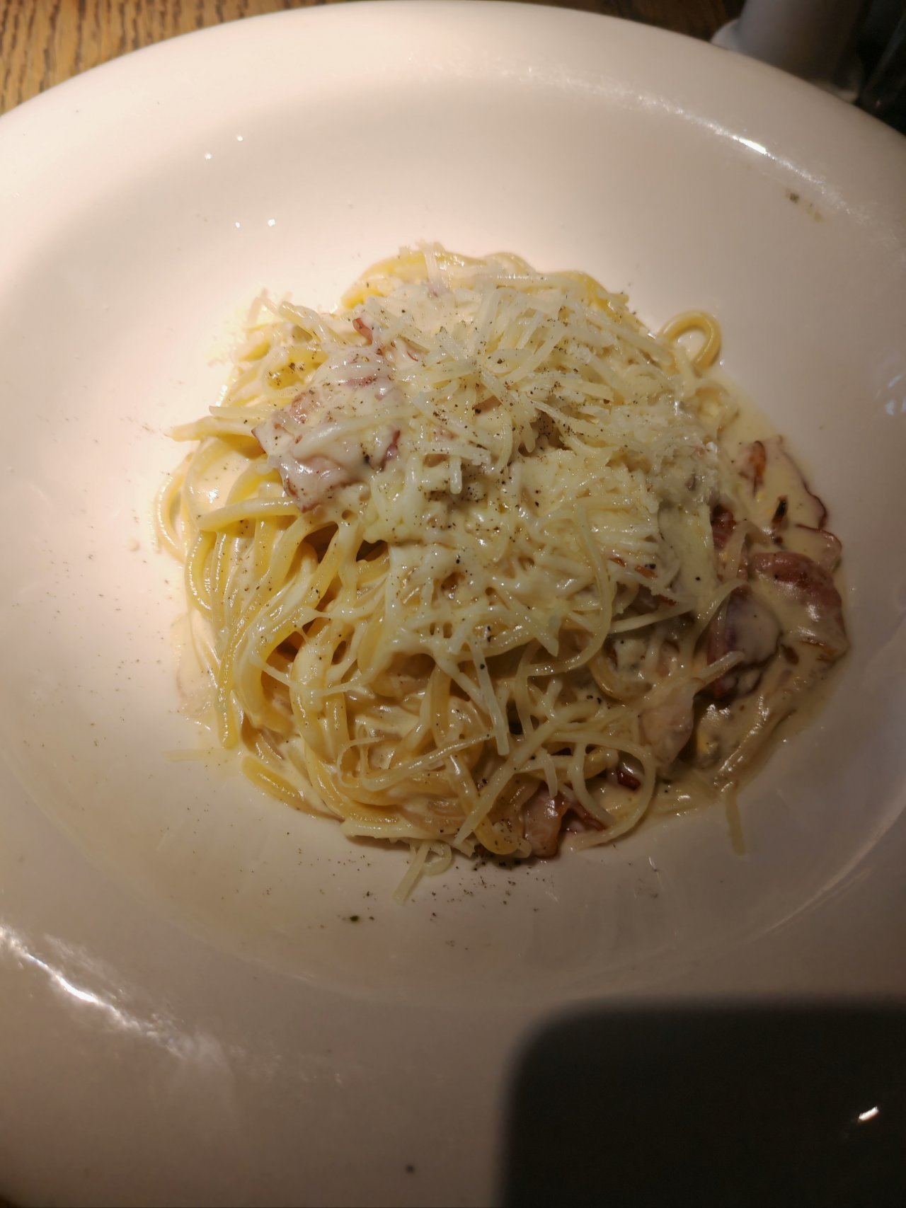 培根很棒,酱汁只要裹在面条上他就不可能难吃,就是面条太硬了有点可惜