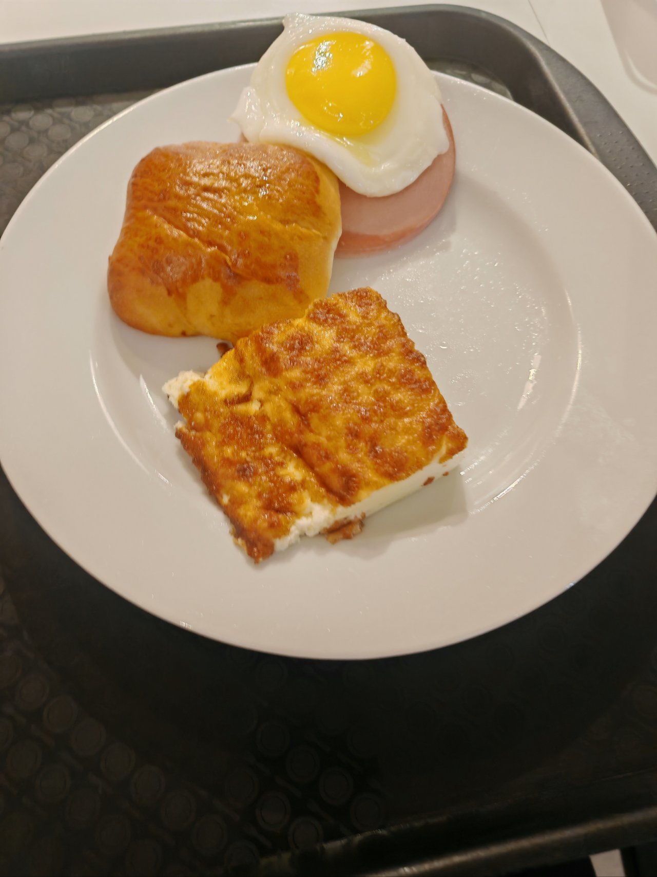 溏心蛋,火腿和煎鸡蛋糕(?)