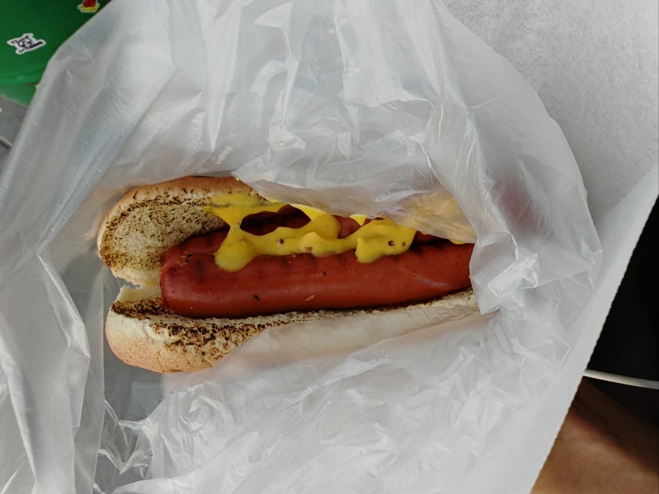 当地连锁热狗店,我家附近有一家,祖国母亲附近的商场也有一家。我必须得说一下,这个肠真的不是国内常见的淀粉肠,是肉的,味道真挺可以的,面包烤的刚刚好,塞一根正常的肠加点芥末酱,不可能难吃。
