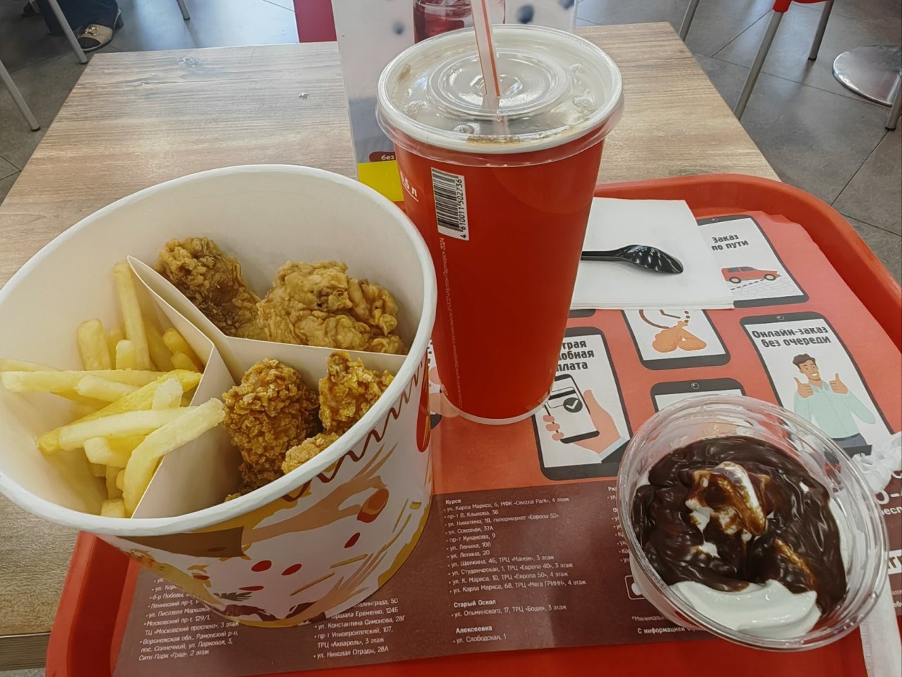 这是我梦想的麦当劳,那个曾经的,没缩水的麦当劳😇。因为人很多,所以薯条是现炸的。这是三家里我觉得最好的。这家真的份量比国内大,口味也比国内好,价格不记得了,总之非常推荐在早上没地方吃饭的时候来炫一顿,他们家早上6点还是6点半开门,在莫斯科算非常早的。