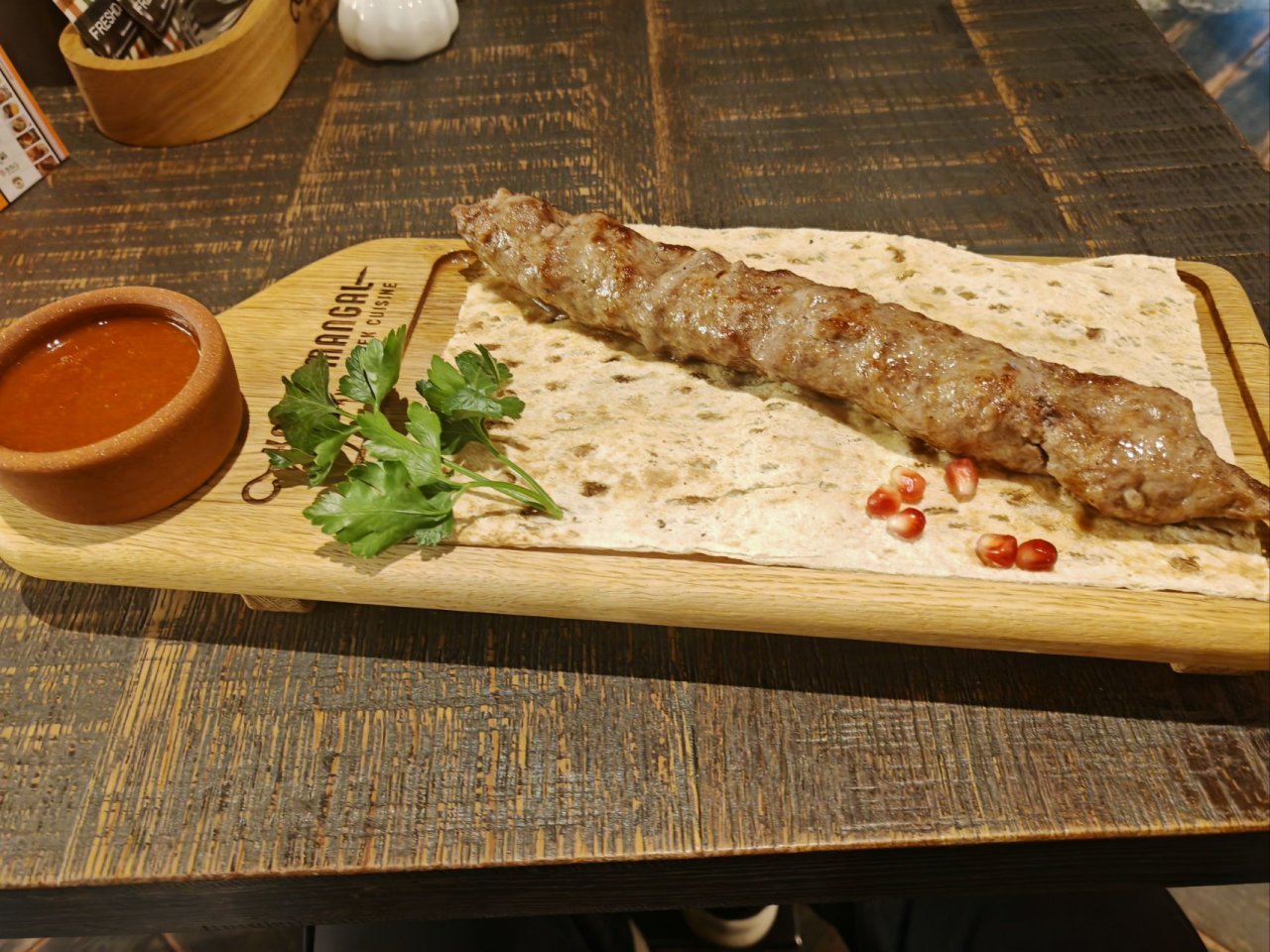 后来我又在涅瓦大街试了一家忘了在哪的格鲁吉亚餐厅。不吹不黑,不如我家锦州的大肉串,我真心觉得我家的串比这个好吃。这家的串我吃都觉得咸,上面那家的肉串没试过,我看评价还行,希望有大能分享下感受。