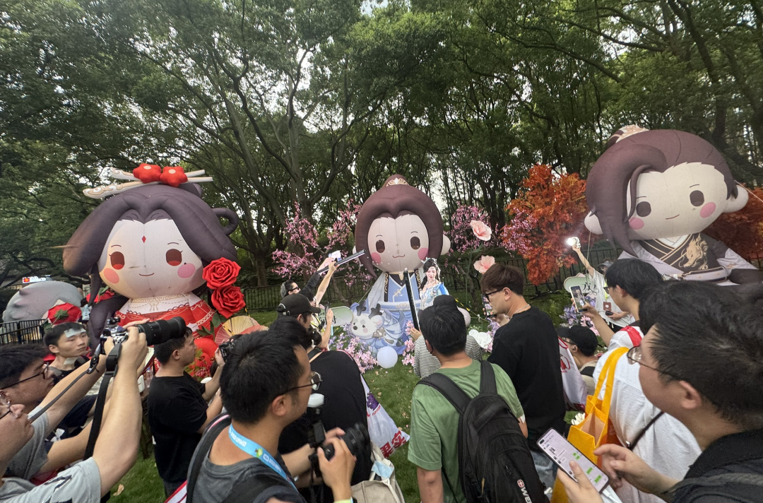 小杨此前从未参加过漫展,特别期待来参加这次活动,并为此做了不少功课。虽然蹲了整整三轮都没有买到门票,「两点钟开票,几秒钟就售罄了」,但她最后幸运地靠抽奖获得了入场券。她是奔着《原神》来,但游戏涉猎广泛,看到旁边的《绝区零》《影之刃零》痛车,还会激动地指给我看。