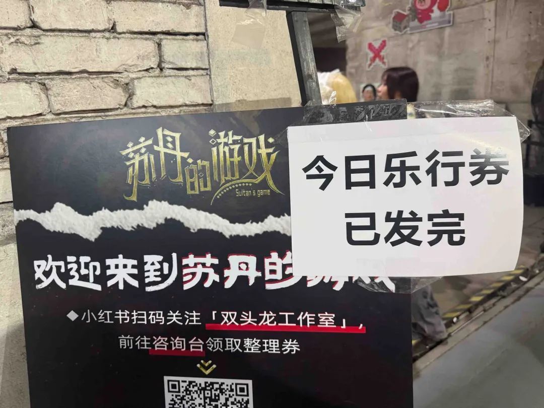 并不是只有米哈游的人气高涨。比如《如鸢》《苏丹的游戏》等游戏的展区,甚至需要先在场外排队获得排队的资格(如乐行券),再凭票进入内场排队,进而参与互动。等我下午五点赶到现场时,所有排队资格都已经发放完毕。