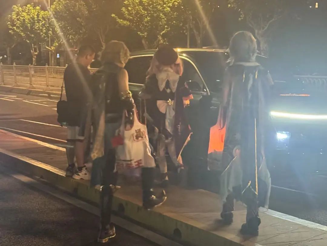 很多人都饱受热浪的困扰,一旁的Coser看起来更是辛苦。同行的媒体跟我开玩笑说,感觉和宫崎英高的关卡差不多——近在咫尺的入口,总是会有不少挑战。不过一旁的本地高中生小杨宽慰我说,进场就有小红书发的风扇和降温贴了。