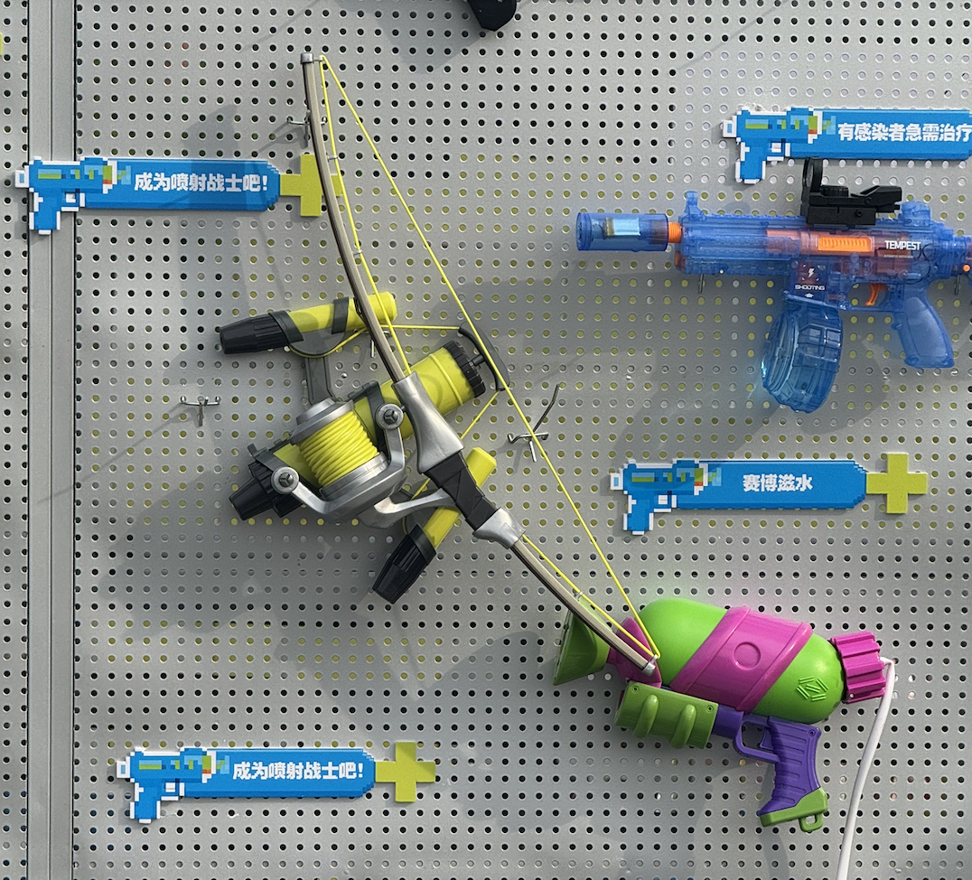 我前后聊上天的两个精力充沛的高中生,本身都是因为米哈游而来,但是排队到一半就放弃了。不过他们对滋水吧的评价很高——和朋友结伴,拿着游戏里熟悉的武器玩水,是非常有夏日感的体验。
