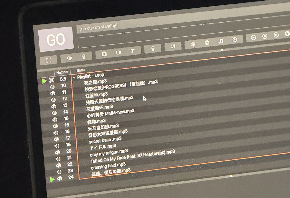 主创团队告诉我,包括舞台在内,整个活动中的歌曲都经过了团队内二次元浓度最高同事的仔细审核。因此在路上,你会听到有人跟着音响轻轻哼着《残酷天使的行动纲领》。我在一处角落发现了他们的主控电脑,歌单也确实有点东西。