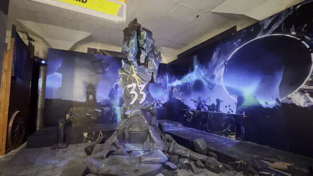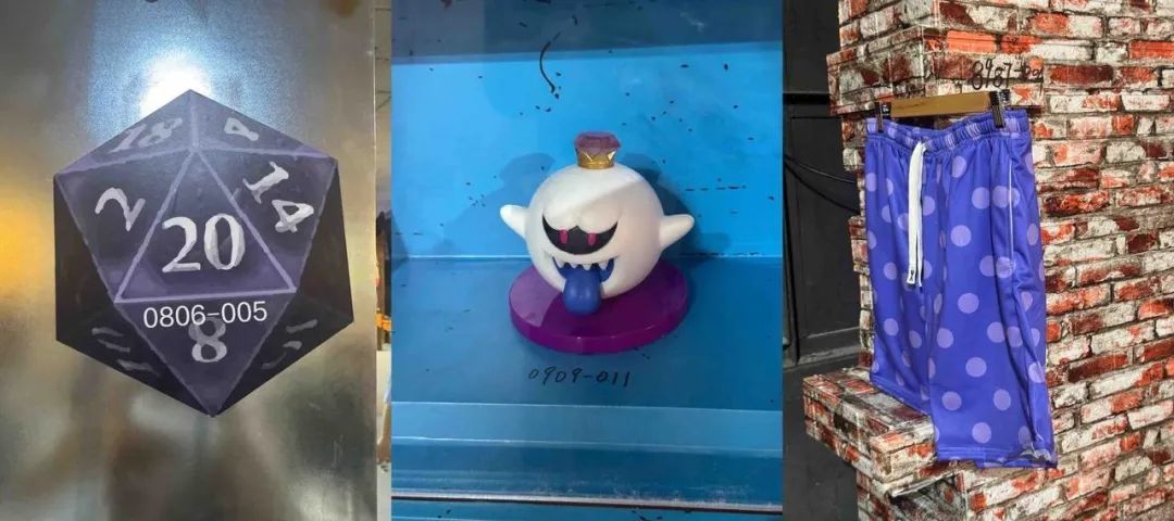 我试图找了找场内出现的彩蛋:《怪物猎人》的艾露猫、《弹丸论破》的黑白熊、《巴别塔圣歌》放逐者的语言、《博得之门3》的20面骰子、《星露谷物语》中刘易斯的紫色幸运短裤,甚至还有健身环的“您完全不运动是吗……”