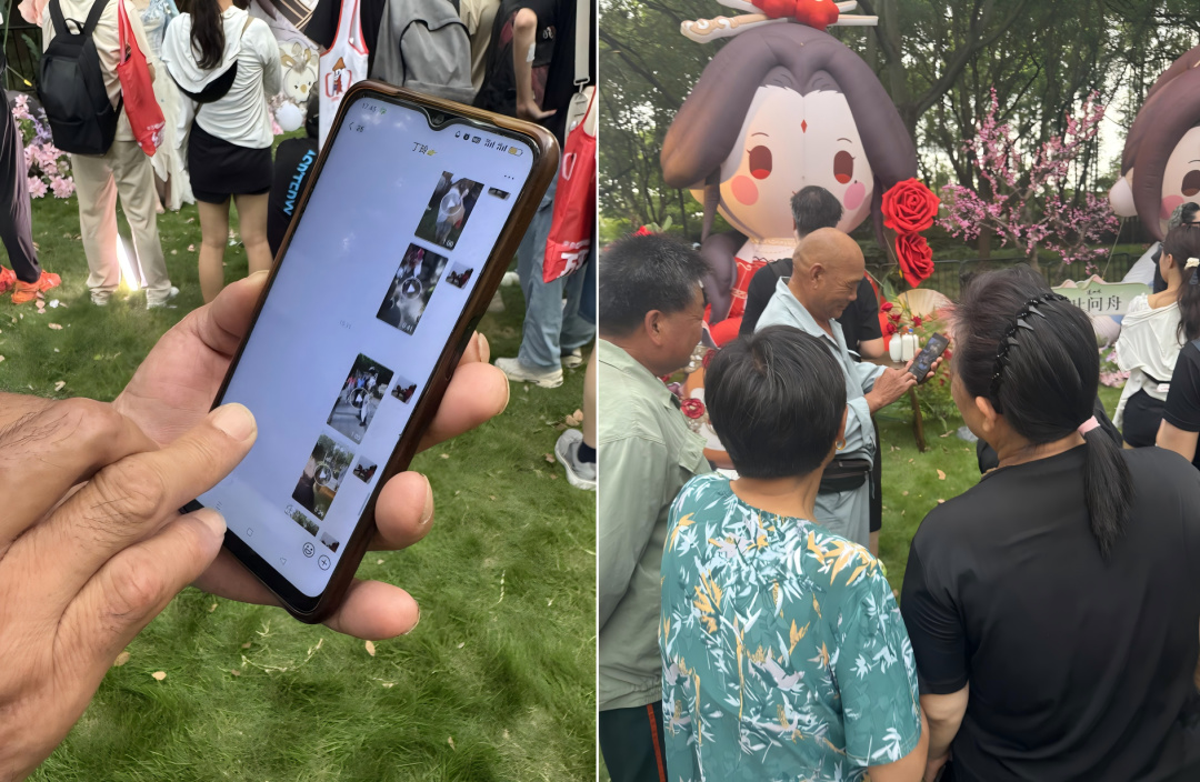 一名在公园工作的大爷,很开心地给我分享了他拍的Coser视频。他说平时公园很冷清,今天这么热闹让他很高兴。这些视频被他发给了家里玩游戏的孩子,还被其他中老年的同事围观。