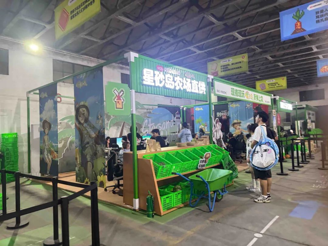 后面我还去独立游戏展区逛了逛,这里被包装成了一个“大型菜市场”,需要拿了菜品小票再去相应的单机游戏处排队。遇到《星砂岛物语》的制作人Richardo,他还跟我开玩笑:「跟着小红书,准没错。」因为他们产品首曝就是在小红书,热度一直很不错,最近已经积累了几十万预约。我来的时候,看到他们这里排队持续有二三十人,直到晚上8点都一直有人来试玩。