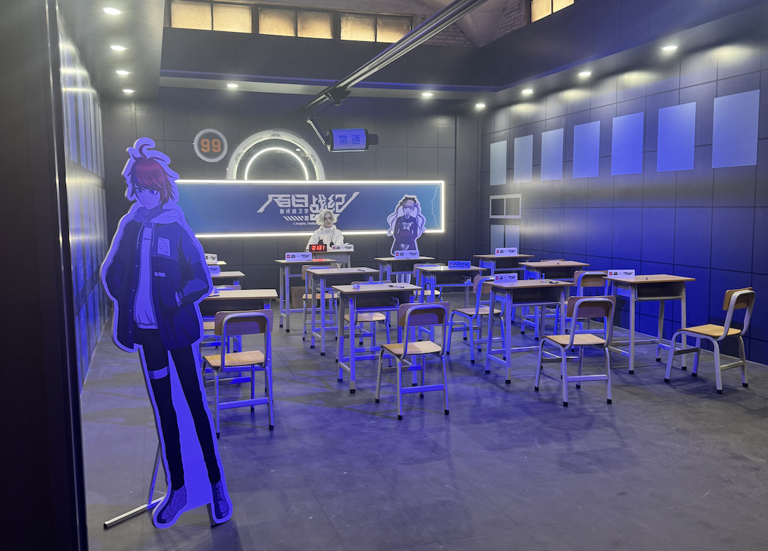 在这里,他们还原了《百日战纪》的游戏场景,空荡的教室里坐着特防队的伙伴苍月卫人。