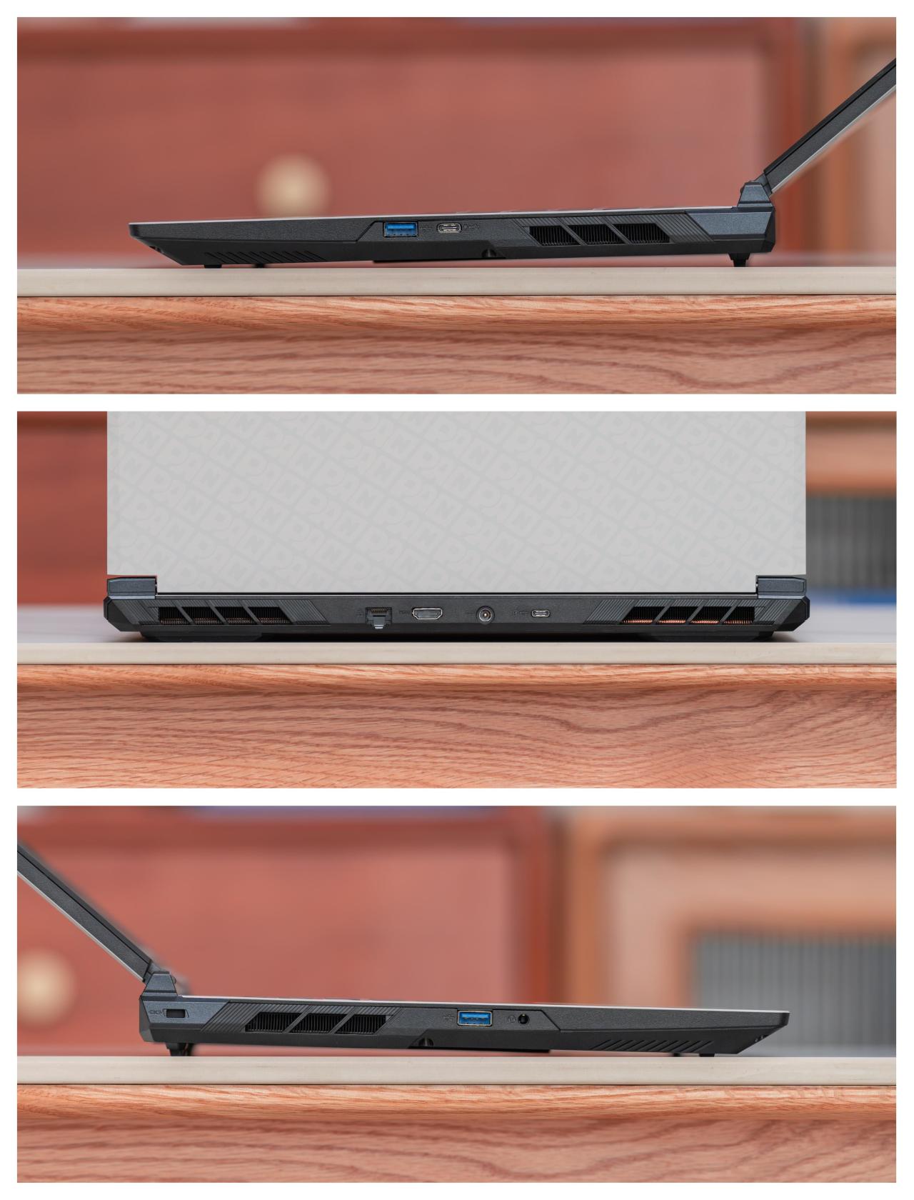 在 I/O 端口上,熊猫本是三面中框均有覆盖,其中 USB-C 和 USB-A 端口各两个,均为 10Gbps + 5Gbps 的带宽组合。视频端口为 HDMI 2.1,另外还有 1Gbps RJ45 网络端口和 3.5mm 耳麦一体接口。