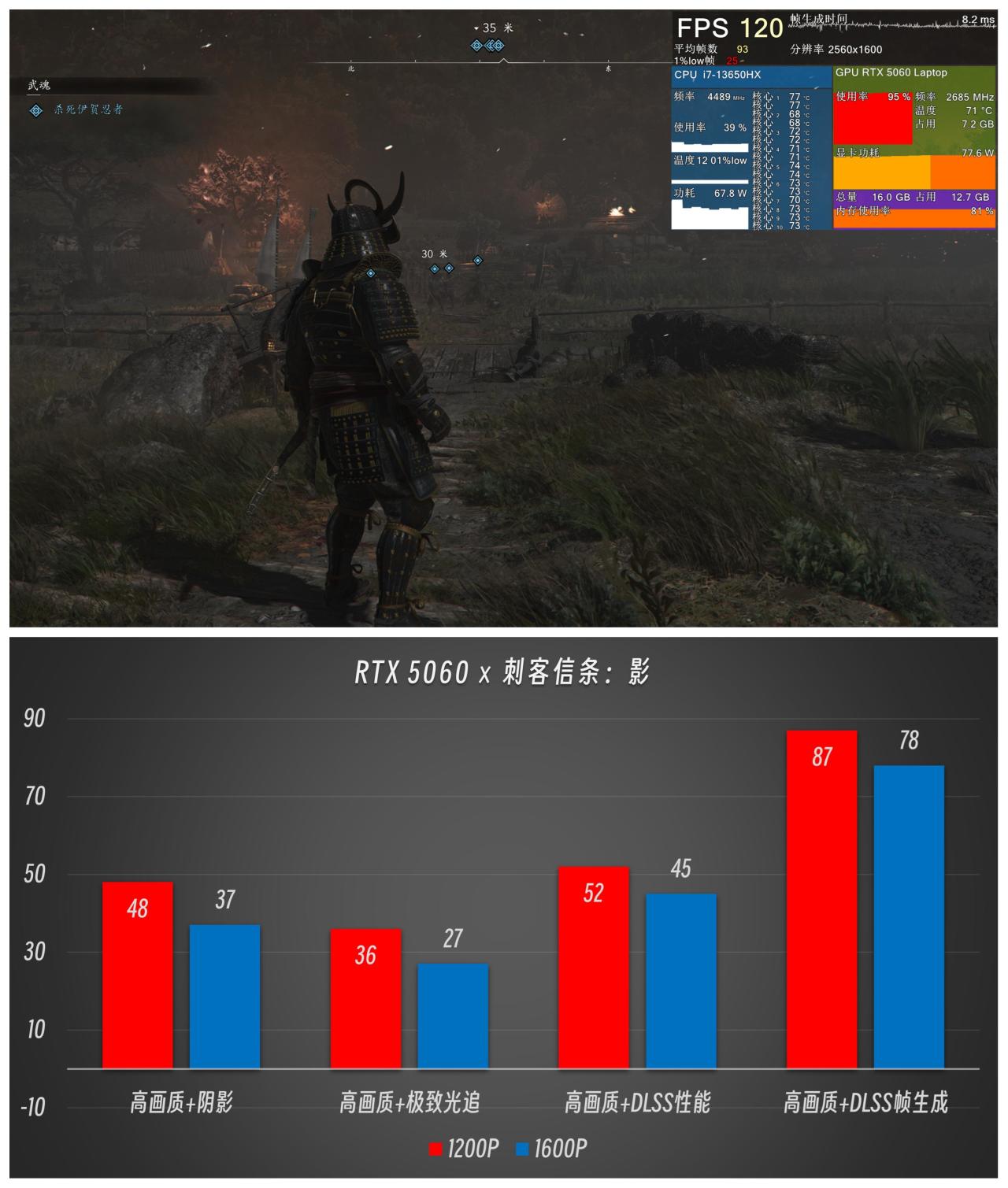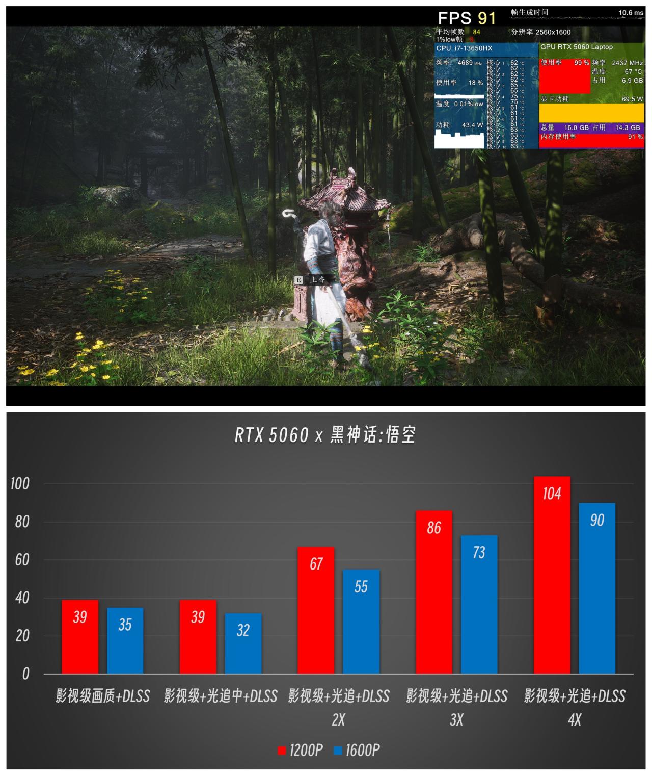 接下来就是 3A 游戏大作的实测部分了,我们来看看熊猫本的 i7-13650HX + RTX 5060 的游戏体验。为了规范测试流程,全部测试均采用 2560×1600 和 1920×1200 两种分辨率进行,方便大家找到适合自己的游戏选项。