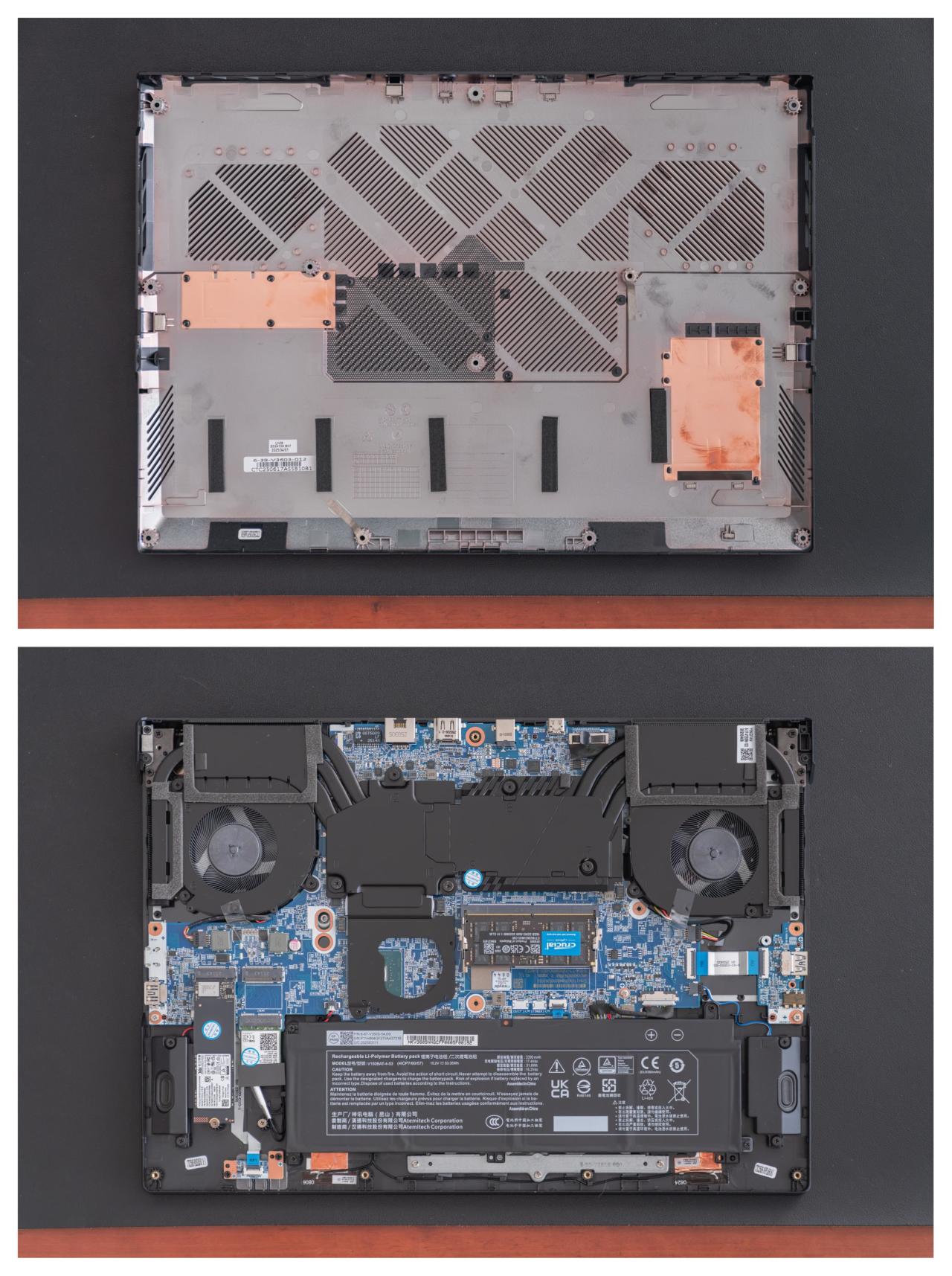 接下来,让我们拆开七彩虹隐星 P16 Pro 熊猫本,通过十字螺丝刀卸下背面的 12 颗螺丝,就可以借助撬棍轻松开盖。开盖后,可以看到熊猫本的内部相当规整。