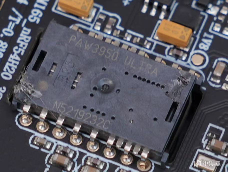 鼠標的無線IC是此次的賣點之一,搭載了諾迪克54H20。這顆主控與目前蝰蛇V4所用的相同,相比52840,在性能上我們感覺不出什麼差距,但在續航上能直觀體驗到明顯提升。